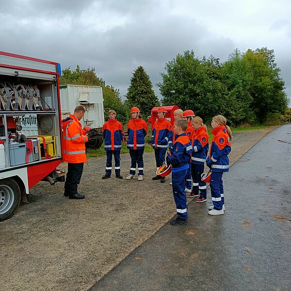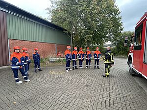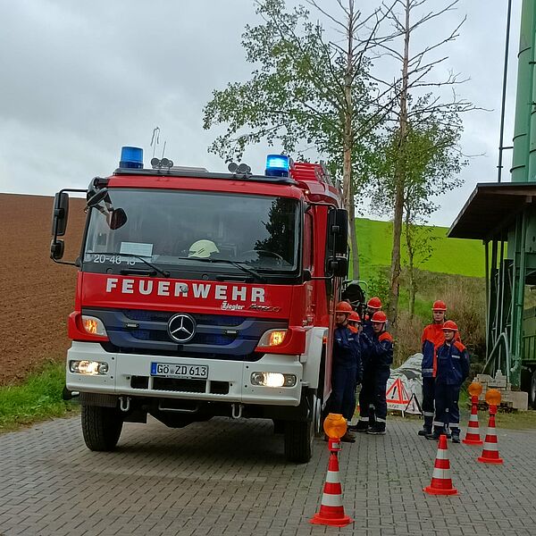 Für die Jugendflamme I durchliefen die Jugendlichen unterschiedlichen Stationen bei denen sie beispielsweise feuerwehrtechnische Geräte erklärten, Schläuche ausrollten und an einer Attrappe einen Notruf absetzten.