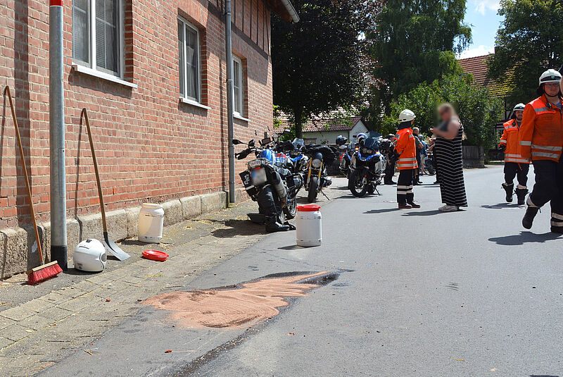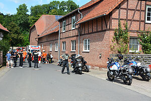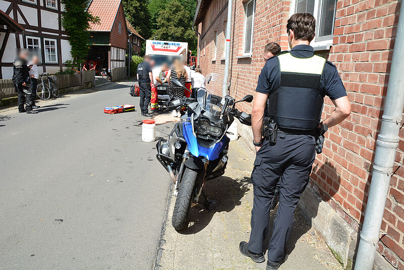 Aus einer Gruppe von Motorradfahrern zog aus ungeklärter Ursache, ein 67 jähriger Motorradfahrer aus Peine, in langsamer Geschwindigkeit mit seinem Krad plötzlich nach Links, und kippte anschließend gegen eine Hauswand.