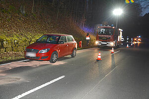 Vor Ort stellte sich heraus, dass ein PKW-Fahrer aus dem Werra-Meißner-Kreis mit einem geliehenen PKW auf der L568 bei Reinhausen liegen geblieben war. Kraftstoff lief aus, der PKW war nicht mehr fahrbereit.