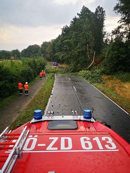 Die Straßenmeisterei wurde hinzugezogen, um die Mengen an Sturmholz zu beseitigen, und die Straßenabschnitte von Ästen und nassem Laub zu reinigen.